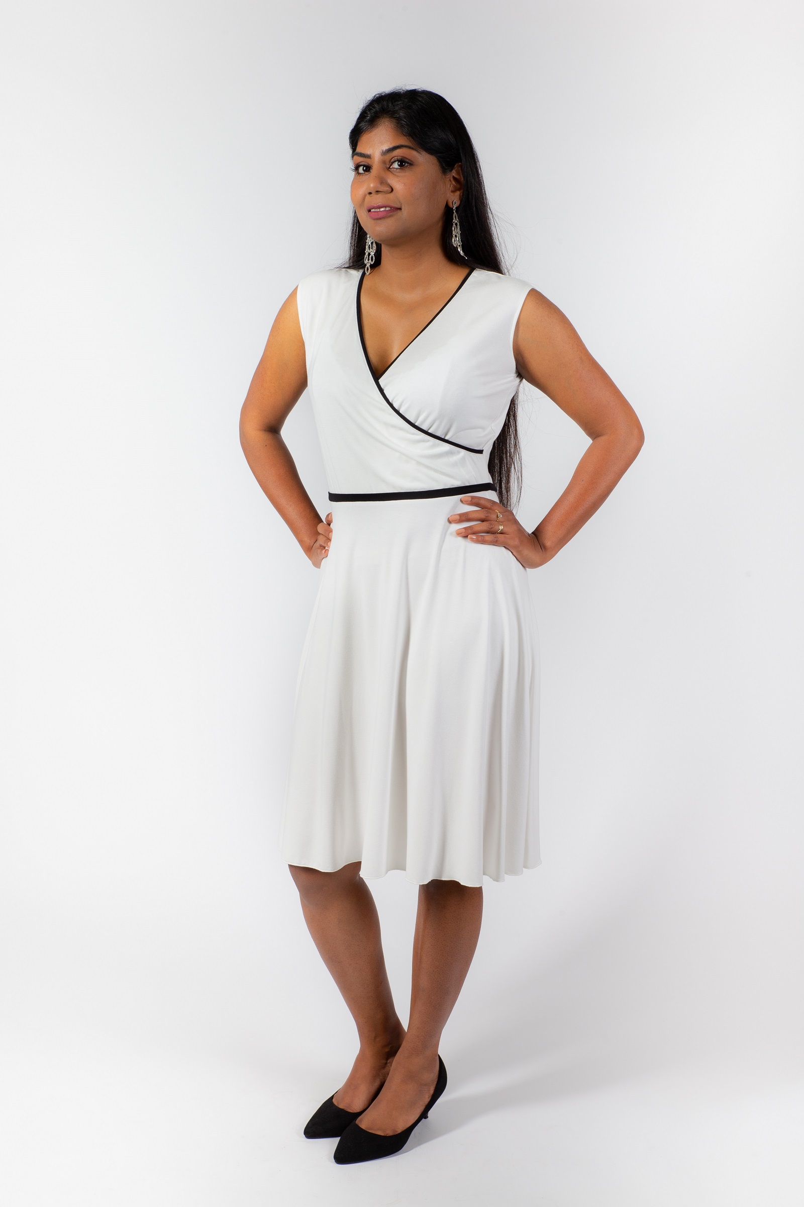 ELENA – sleeveless V-neck wrap A-line dress with edge decoration
